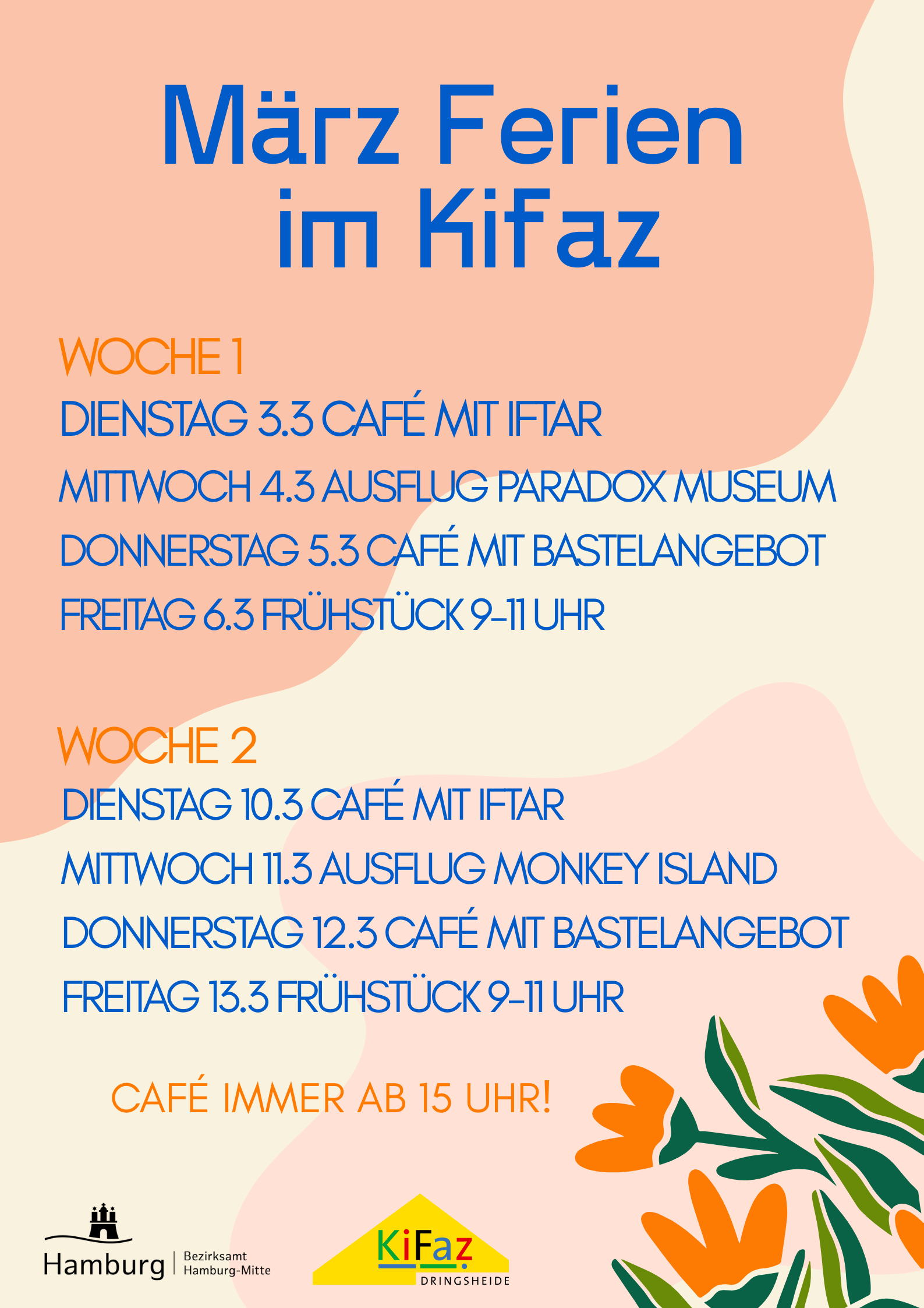 Während der Schulferien pausieren unsere wöchentlichen Angebote.